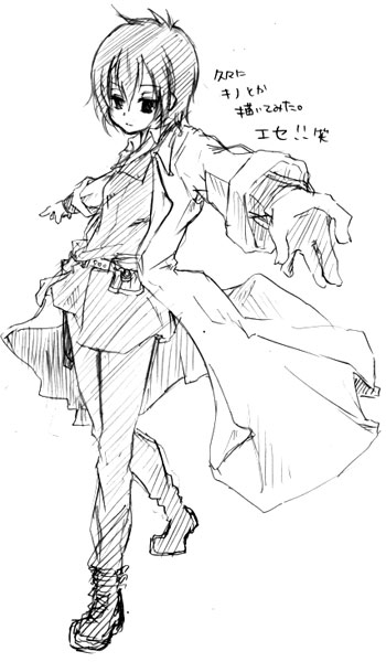 まさか明日発売のABCの愛してないの空耳だとかそんなの聴いた人しかわからんから! さて、そういうわけで今日は仕事帰りに高速でフライング購入してきます。 うへッ! 膀胱炎楽しみ~!(だから違…) PV楽しみ~! そういえば今回発売日が1週間ズレたおかげではじめて午前勤の週に買いにいける。 邪関係ってなんか午後勤に集中してたんだよな…! これは嬉しい。 仕事、繁忙期のはずなのやたら暇でおかしいなぁと思ってたけど@ベクスが配信をはじめるとかであゆ作ってないのが原因ではないか、と昨日気付いた。 そういえば繁忙期のオーダーは@ベクスの至急品が大半だもんな。 配信にしてくれたおかげでらくらく。 でも平日こんなに暇で止まってる機械もあるのに休日出勤が2日もあって稼働台数がやたら多いのが無駄に思えてw 昨日なんか暇すぎてひとり帰れる勢いw 忙しすぎるよかましだが、去年と比べるとものすごい差…そろそろ潰れるんじゃないかあの会社w 寒いから寝よう。笑 2007.11.23 Fri 03:44:44 寒い手がかじかむけど無性に何か描きたかったのでキノ様でも描いてみた。 あぼーん。 別人…誰。 ハヤテ描こうとしたけどさすがにいきなりハヤテってみんなついてこれないかなって。 え、もう置いてけぼり? そんなこというなよ☆ キノ描いて思い出した。 12月発売のキノのフィギュアとビジュアルノベル予約してなかった! あぶねー! 毎回描き下ろしのビジュアルノベルも楽しみ~! しかも今回のビジュアルノベルの特典DVD、★氏のキノ絵に一番忠実な作画の劇場版だった。 これ上映会結局見にいけなかったから絶対欲しい! シナリオも「病気の国」というなんともすばらしい選択をありがとう。 何故アニメ版でこの劇場版スタッフを使ってくれなかったのか! アニメ版の作画は正直アレなので…DVDパッケージが★氏描き下ろしだからまんまと買うバカがここにいますけども。 しかし…キノDVDは通常版と廉価版がパケイラ違うのが嬉しいけど涙でてくる…どっちも買えというのか…!orz あ、過ぎてしまったが黒星先生お誕生日おめでとうございました。 しゅーじぱぱもおめでとうございました。 しかし、黒星氏…「こないよ誕生日なんてw」 いや、よく考えなくても毎年来てるでしょうに。笑 なんという人だ。 さービジュアルノベル予約予約~。 フィギュアは…どうしようかな…画像見る限り黒星氏のイラストをそのまま立体化したようなクオリティの高さなんだが。 それにしても明日は電撃の15周年のイベントですね! 黒星先生&時雨沢先生のサイン会ですね!!!! ちょ…!おま……!!! 本気行きたかった………!!!!!! 2007.11.22 Thu 03:49:42 まぁ。マドモDMがこないこないとやきもきしてたらいつのまにか到着してた罠。