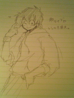 寧ろ巣に帰ってきました。 ライブは勿論、オフ会もとてもすばらしかったです…! ま、ライブはね、やすのりさん一発目から躓いてたけどね笑 そんなやすのりさんが好きなんですYO! でも1曲目からあの曲がくるとは夢にも思わず! 嬉しい!生で聴けたことが! セットリスト私はメモらなかったんですがオフ会で梛さんのメモ写させていただいたので、また明日か明後日か明々後日か今週中か今月中か(いつだよ!)…えと、とりあえずできるだけはやめに書きます。笑 あ、そうそう! オフ会の3次会でね! 自分のノートに落書してたらさ! シ ャ ー ペ ン 壊 れ た !(爆笑) うわー! マイシャーペン破壊! これは…2代目が見つかるまで絵は描けないかもしれない!(何) なんということだ。 ま、別にいいけど。 とりあえず眠たくてしょんないんですよ。 寝ますよ。 明日仕事ヤダ。 毎日ライブならいいのに。 |